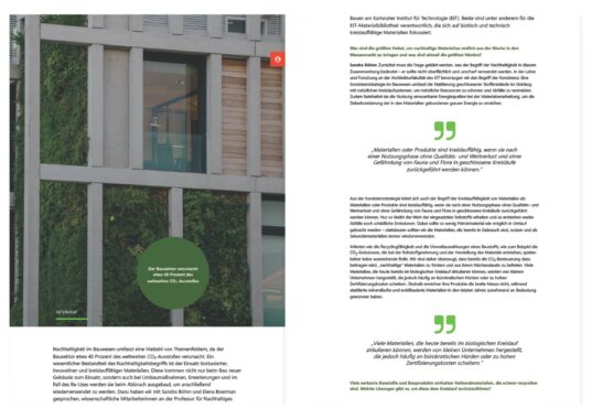 In an interview with RKW, Sandra Böhm and Elena Boerman from KIT emphasised the importance of using recyclable materials in sustainable construction. To avoid waste and conserve resources, these materials should be reusable without any loss of quality. In particular, they argue that the recycling of building materials from existing buildings — the ‘urban mine’ — could be improved. Currently, many materials are not separated during demolition, composites make recycling difficult, and only a small proportion is recycled.