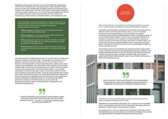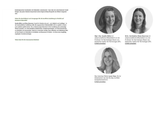 ‘What we need is a new openness to a variety of materials – especially those that are recyclable, i.e. that can circulate permanently in biological or technical cycles.’ says Sandra Böhm. The experts also emphasise the need for material diversity: there is no such thing as a ‘panacea material’. Durable, efficient structures can only be created through the targeted combination of different recyclable building materials. This diversity should be taught in practical training and studies to equip architects and craftsmen to design buildings that are environmentally friendly, resource-efficient and built to last for generations.